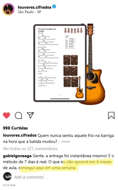 Enquanto outros métodos te prendem em teoria por meses, o Método 7 Dias foi desenhado para você estar tocando suas primeiras músicas em menos de uma semana!
