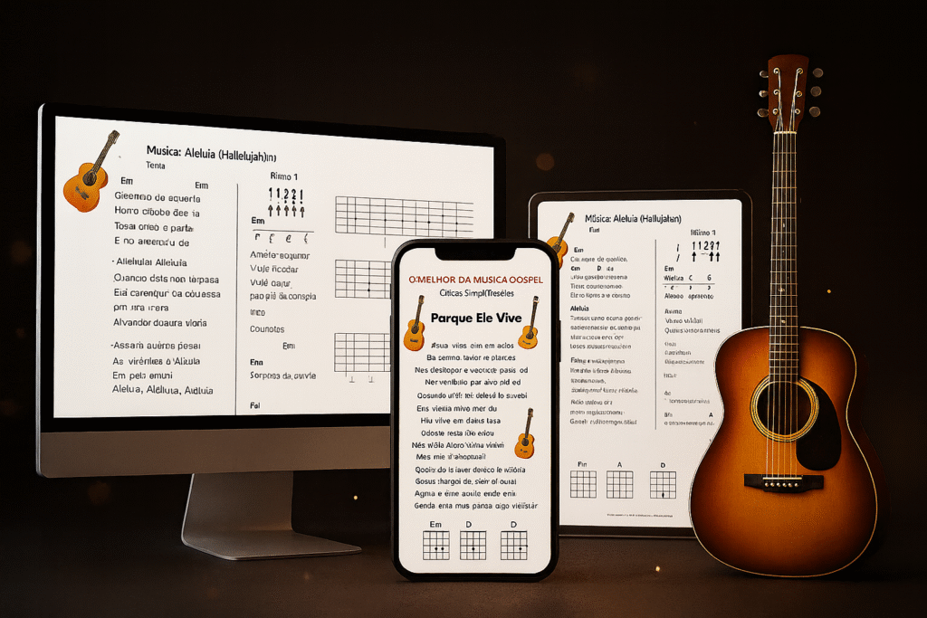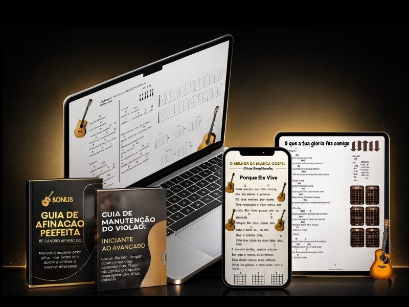 Este não é apenas mais um livro de cifras… É um SISTEMA COMPLETO desenvolvido especificamente para iniciantes que querem resultados rápidos e concretos no louvor gospel.